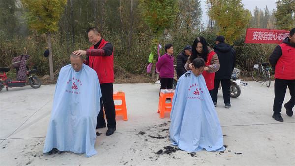 活动当日,尽管天气阴霾,却丝毫未能阻挡志愿者们的热情。他们派出小分队,深入村中鳏寡孤独及高龄老人家中,开展“入户暖心”行动。志愿者们帮助老人整理家庭卫生、清扫庭院,送去慰问品,并提供义务理发、血压血糖检测等便民服务。他们以真挚的关怀和切实的行动,将尊老、敬老、爱老、助老的精神落到了实处,让特殊群体感受到了来自社会的温暖与牵挂。另一小分队在场外为老年人包制爱心水饺,看完演出为老人分发。