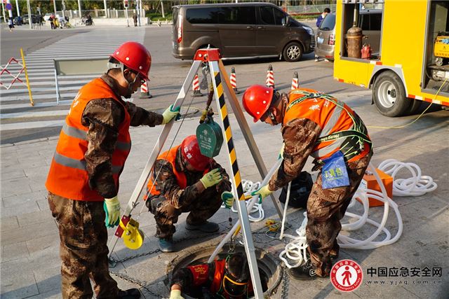 在本次演练中,严格按照“先通风、再检测,后作业、有监护”的原则进行操作。并加入了有限空间监督人,要求其全程佩戴可视头盔,对现场人员、作业条件、突发情况进行全程监管。