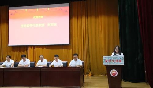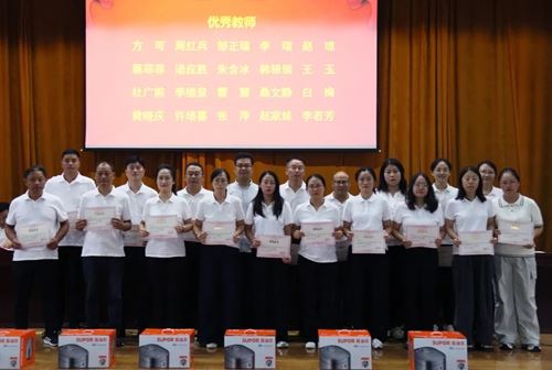 表彰环节中,校领导单顺忠、颜浩、李奉军、曹士勋依次宣读相关表彰决定。优秀班主任李小薇、优秀教师赵家妹、学科中心代表桑文静、备课组代表童开武先后发言,分享育人经验与团队成长心得。现场掌声不断,氛围庄重热烈。
