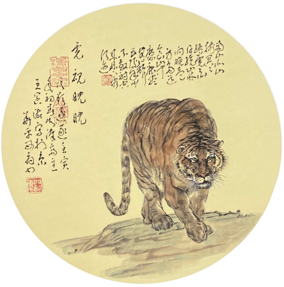 刘:中国画有大器晚成的规律,这个规律,应该非常珍重它。“人文肇始,灵通太极,盘古开天,日月叠壁,垂立天象,山川焕绮,龙凤藻绘,虎豹凝姿。”这段四言诗很有学问,是你的《古汉画礼赞》第一章当中的一小段。可谓管中窥豹。这里我就想讨论你的个性问题,虎豹,雄强的个性和坚韧的意志统一在你的艺术里面。综合修养的修行很重要,你补多少就能产生多少的高度,你补的数量和你的艺术的高度是成正比的,所以最后就是画人格、画修养。