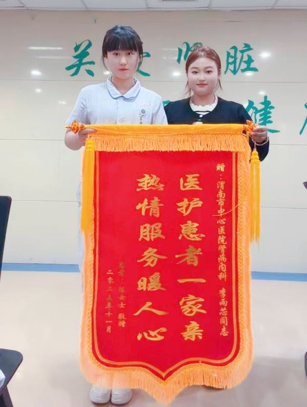 本网渭南讯:近日,有患者家属给渭南市中心医院肾病内科的护士李雨芯同志送去了一枚锦旗,据了解,该患者在渭南市中心医院肾病内科住院20余天,责任护士是李雨芯。