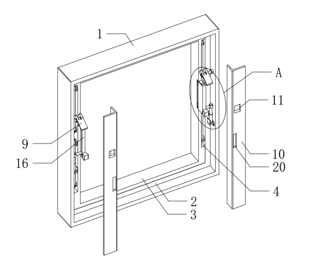 该装置由外框、内框、安装架等核心部件构成,以“便捷操作、安全防护”为核心研发理念,彻底解决了传统逃生方式的诸多弊端。其创新采用电动伸缩杆与机械结构联动设计,当车辆遭遇险情时,车内火焰探测器与烟雾探测器可快速捕捉异常信号,驾驶员通过中控台一键启动电动模式,电动伸缩杆将带动套杆顶起活动架,仅需数秒即可推动安装架脱离内框,开辟出宽敞逃生通道。整个过程无需敲击玻璃,安装架通过活动板与销杆的配合平稳移动,从根源上避免了玻璃碎片飞溅造成的划伤、刺伤风险。