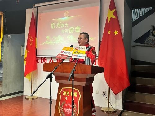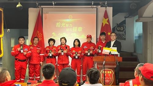 为新队员颁发拾光救援队工作证