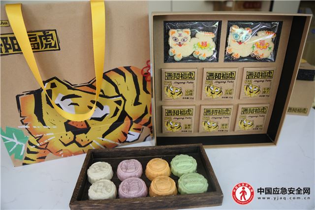 李璐介绍,今年晋泉稳定复流后新推出的“晋阳福虎”和“晋阳风物”两款晋祠米月饼礼盒装迅速成为市场爆款。“晋阳福虎”以十三太保飞虎将军李存勖为灵感,将山神传说融入连环画设计。礼盒内不仅有福虎造型的“人人马马”月饼,还有山楂、凤梨、牛奶提子、生椰拿铁、蜜桃乌龙、酸奶六种口味的米皮月饼,造型融合了龙山燃灯石塔、天龙山漫山阁等文化元素。抽拉式礼盒开启时,福虎图案动态呈现,寓意虎虎生威,盒内还附有仿珐琅金属冰箱贴和DIY贴纸,趣味十足。“晋阳风物”礼盒则以晋阳西山为主题,天龙山、悬瓮山、龙山、太山、蒙山五山九峪为图案,搭配采用巴塞罗那玻璃天空工艺的金属书签,层峦叠嶂,意境深远。礼盒同样包含六种口味的米皮月饼及两枚“人人马马”月饼,每一口都承载着浓郁的地域文化。