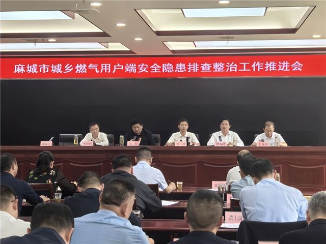 中国应急安全网(通讯员:蔡波、陈寒)9月26日上午,麻城市城乡燃气用户端安全隐患排查整治工作推进会在市政府东三楼召开,24个乡镇(街道)及相关部门负责人齐聚一堂,聚焦燃气安全这一民生大事,为即将到来的国庆、中秋“双节”及后续安全稳定工作谋部署、定举措。市人大常委会党组书记、主任冯向主持会议,市委常委副市长梁锋、市人大常委会副主任肖裕明、副市长明瑞堂、副市长洪为民、市政协副主席丁谷良等市领导出席会议。副市长洪为民作工作部署。