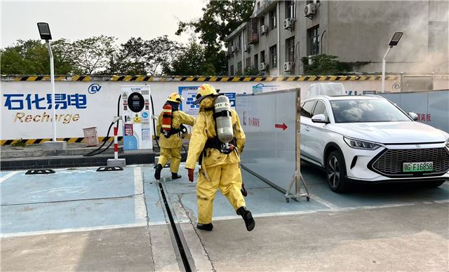 本网鄂州讯(梅红兵)在第34个全国“消防日”到来之际,中国石化湖北鄂州石油公司联合市消防救援部门,在桥东加能站成功举办充电车辆灭火救援实战演练,以“实战实训”模式提升新能源汽车火灾事故处置能力。