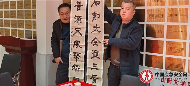 座谈会上,各位专家学者围绕《三晋石刻大全》创编历程及其背后艰辛的故事进行深入交流,对《晋源卷》的编纂提出了针对性的指导意见,对《三晋石刻大全》下一步的工作推进也提出了具体建议。山西省三晋文化研究会副秘书长、《三晋石刻大全》排版人刘小明现场赠送“石刻大全汇三晋,晋源文风聚稻田”书法作品。