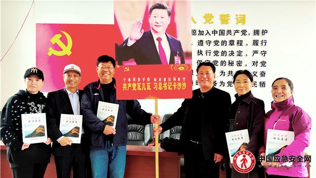 ▲2020年11月22日,木乃克都会长(右三)与前来彝学会交流学习的中铁十局员工合影。(邱 华 摄)