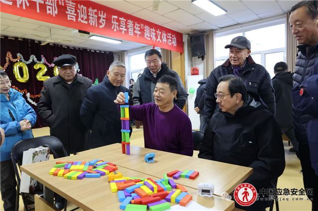 随后,趣味文体活动精彩开启。本次活动共设计了“迎新接福”接球乐开怀、“五谷丰登”护谷兆丰年、“纳福掷喜”掷球送吉祥、“同心筑梦”搭木贺新岁、“棋开新局”智引好运来、“祥瑞冰壶”推棋迎新岁6个项目,有的需要积极动脑,有的需要身体协调、手脑并用,老干部们各选所长,全心投入各项活动中——在“迎新接福”接球乐开怀中考验反应与速度,促进手脑协调;在“五谷丰登”护谷兆丰年中比拼细致与耐心,练就沉稳心态;在“纳福掷喜”掷球送吉祥中考验眼力与体力,顺便活动筋骨;在“同心筑梦”搭木贺新岁中则充分展示搭建技巧与稳定性;“棋开新局”智引好运来项目吸引了众多棋艺爱好者,互不相让一拼上下;“祥瑞冰壶”推棋迎新岁项目将现场气氛推向高潮,老干部们聚精会神地盯着目标线,灵敏地将“冰壶”推向前进,引来阵阵欢笑与掌声。活动现场助威声、欢笑声此起彼伏,充分展现了离退休干部们热爱生活、永葆活力的精神风貌。